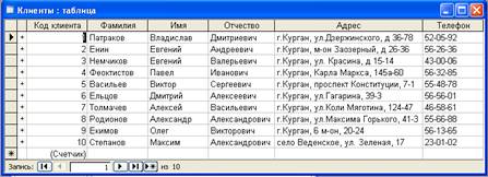 Рисунок 1 – Таблица «Клиенты»