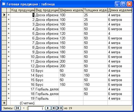 Рисунок 2 – Таблица «Готовая продукция»