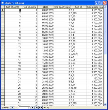 Рисунок 3 – Таблица «Оборот»