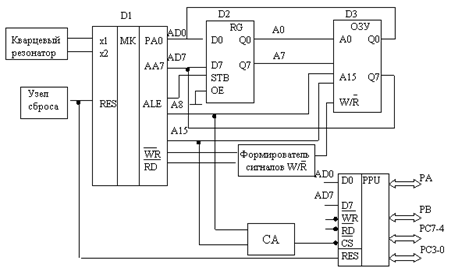 Селектор адреса СА служит для адресации адаптера параллельного интерфейса i8255.
