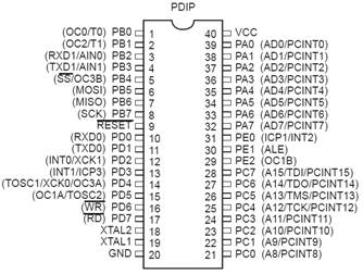 Схема цоколевки микроконтроллера ATmega162 приведена на рис.2