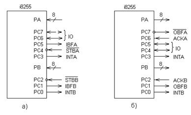 Рис. 5 Распределение линий порта С: а) при вводе информации в порты А и В; б) при выводе информации.