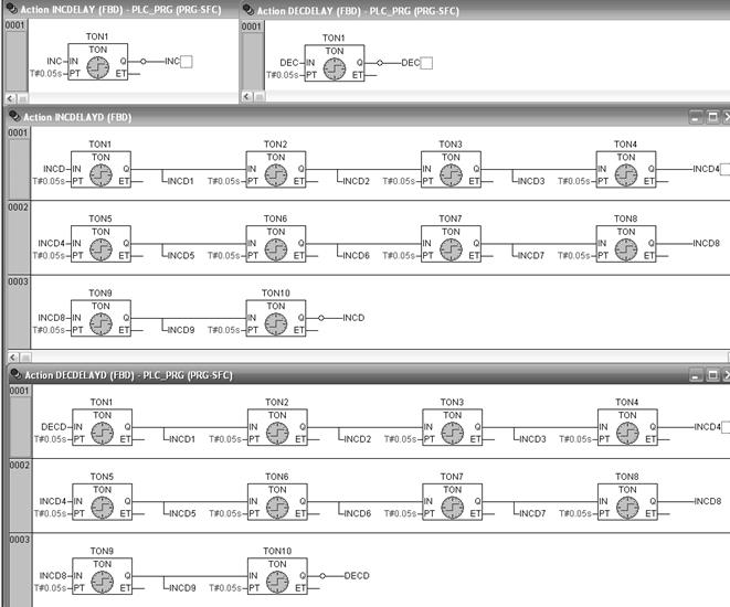 Для того чтобы задать другие значения длительностей управляющего сигнала с ПЛК, необходимо в среде программирования CoDeSysизменить значение PTтаймеров TON1-TON10 на требуемое.
