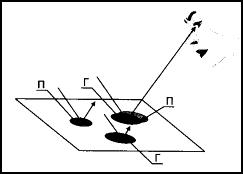 Нанесення трьох фарб (Ж, П, Г) у кількості, що наведена на рис. 8 (б), призводить до утворення нейтрально сірого поля з кривою спектрального поглинання 2, що приблизно можна замінити щільністю нейтрально сірого зразка.