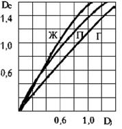 Рисунок 9 – Залежність еквівалентних нейтрально сірих оптичних щільностей Dс від величин зональних оптичних щільностей блакитного, пурпурного і жовтого фарбових зображень Dj (j = б, п, ж)