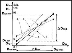За можливістю точне суміщення інтервалу щільностей оригіналу з ефективним інтервалом щільностей растрового відбитка показано на рис. 11 (залежність 1). Під час відсутності такого суміщення, як правило, втрачаються перепади (деталі) яскравості або у світлих (2), або в темних (3) тонах або невиправдано зменшується і без того менший, ніж в оригіналі, контраст ілюстрації (4), що також призводить до втрати яскравостних перепадів, але вже по всьому інтервалу.