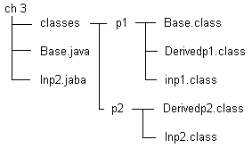 Рассмотрим большой пример. Пусть имеется пять классов, размещенных в двух пакетах, как показано на рис. П.1.