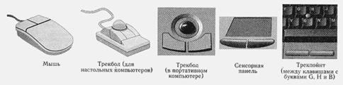 5. Уже в этой редакции графического интерфейса стали использоваться манипуляторы (типа мыши, трекбола и т.п. - см. рис.3) Они позволяли быстро выделять нужную часть экрана и перемещать курсор.