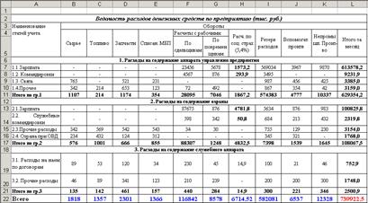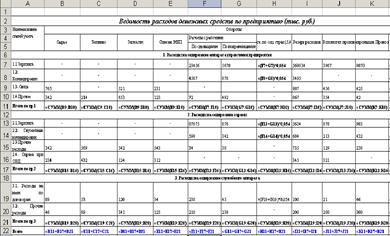 Ведомость расходов денежных средств по предприятию (тыс. руб.)