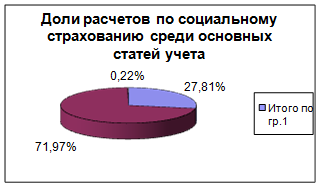Диаграмма 1. Доли расчетов по социальному страхованию по основным статьям учета