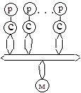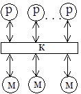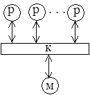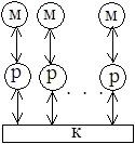 Классификация параллельных вычислительных систем, предложенная Т.Джоном, основана на разделении МВС по двум критериям: способу построения памяти (общая или распределенная) и способу передачи информации. Основные типы машин по классификации Т.Джона представлены в таблице 1. Здесь приняты следующие обозначения: p- элементарный процессор, M - элемент памяти, K- коммутатор, С - кэш-память.