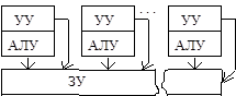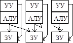 Параллелизм любого рода требует одновременной работы, по крайней мере, двух устройств. Такими устройствами могут быть: арифметико-логические устройства (АЛУ), устройства управления (УУ). В ЭВМ классической архитектуры УУ и АЛУ образуют процессор. Увеличение числа процессоров или числа АЛУ в каждом из них приводит к соответствующему росту параллелизма. Наличие в ЭВМ нескольких процессоров означает, что одновременно (параллельно) могут выполняться несколько программ или несколько фрагментов одной программы. Работа нескольких АЛУ под управлением одного УУ означает, что множество данных может обрабатываться параллельно по одной программе. В соответствии с этим описание структур параллельных систем можно представить в виде упорядоченной тройки: