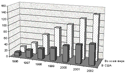Эти тенденции можно сопоставить с таким вполне предсказуемым фактором, как рост онлайнового мира. Ожидается, что к 2001 году более 70 процентов всех домашних компьютеров в мире (что составляет примерно треть от общего количества семей, имеющих компьютер) будут подключены к Сети. Исследования компании International Data Corporation показали, что в октябре 1997 года общее количество пользователей Интернета во всем мире составляло 53 миллиона человек. К декабрю их число возросло до 60 миллионов. За 1997 год через Сеть было приобретено товаров и услуг на сумму в 10 миллиардов долларов(!), причем ежедневно через Интернет осуществлялось около миллиона сделок и транзакций. В рекламу на Интернете в 1996 году было вложено 200 миллионов долларов, и предполагается, что к 2001 году эта цифра возрастет на 65,7 процента.