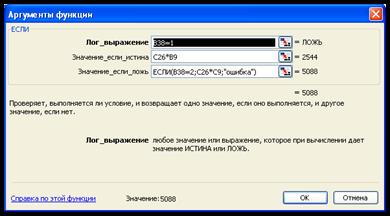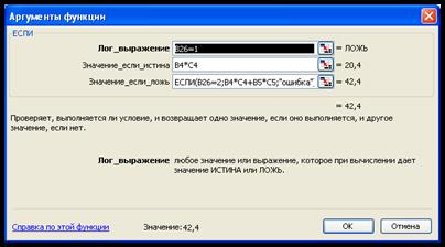 =ЕСЛИ(B26=1;B4*C4;ЕСЛИ(B26=2;B4*C4+B5*C5; «ошибка»));