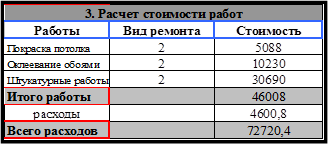 Расчет стоимости работ приведен ниже (см. табл. 4):