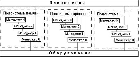 PalmOS базируется на микроядре. Вокруг микроядра построены системные службы - менеджеры PalmOS, представляющие собой наборы модулей, обеспечивающих определенные функции. К таким менеджерам относятся, например: