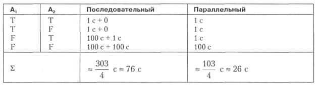 Другая причина повышенного ускорения иллюстрируется примером. Пусть нам нужно выполнить логическую операцию A1 vA2, где как A1 так и А2 имеют значение «Истина» с вероятностью 50%, причем среднее время вычисления Ai, обозначенное как T(Ai), существенно различается в зависимости от того, является ли результат истинным или ложным.