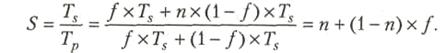 В результате получаем формулу Амдала, выражающую ускорение, которое может быть достигнуто на системе из nпроцессоров: