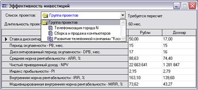 В разделе "Анализ проекта" выдаются показатели эффективности инвестиций (рис.А4). Получены следующие данные: