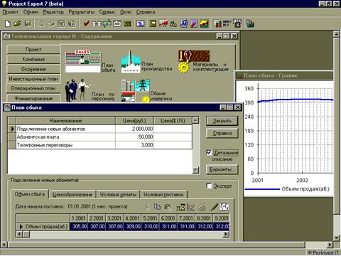 Система достаточно гибко подходит к представлению данных о проекте, позволяя либо увязывать все этапы инвестиционной и дальнейшей операционной деятельности, либо описывать эти стадии проекта независимо. В системе ProjectExpert упор сделан на финансовые аспекты подготовки проекта – стоимость подготовительных работ, используемые ресурсы и особенности учета инвестиций.