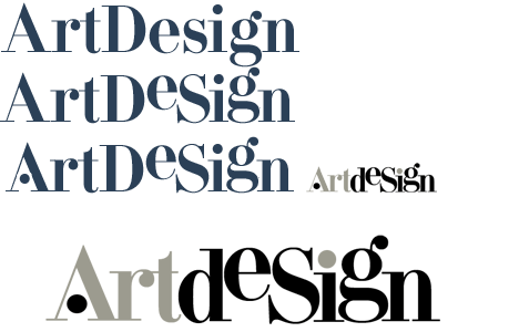 Следующим этапом является общая компоновка логотипа, поиск акцентных частей, выразительность через символ основной мысли. В итоге из ArtDesign образовался ARTdesign. Основной акцент ставился на слове ART. Перекомпоновка привела к первому рабочему варианту логотипа (рис.1).