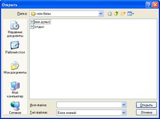 Если необходимо отредактировать уже существующую базу знаний необходимо выбрать команду меню «Файл - Открыть базу» и выбрать в окне выбора файла (рисунок 3.2) нужную базу - файл с расширением *.bzn. При открытии существующей базы можно приступать к редактированию правил (рисунок 3.3).