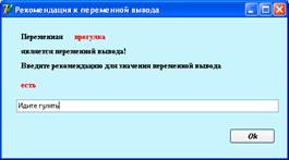 Если переменной вывода нет в ТПВ, то эксперту будет предложено ввести рекомендацию для определенного значения переменной вывода (рисунок 3.5).