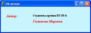 procedure N13Click(Sender: TObject) - Вывод информации об авторе;