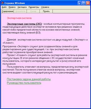 Данная программа имеет два модуля «Expert» и «Klient», которые используют в работе одну и ту же базу знаний.