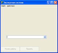 Для запуска программы необходимо открыть исполняемый файл «Klient.exe». При этом появится окно, приведенное на рисунке 3.11. Для начала работы экспертной системы в режиме консультации необходимо загрузить необходимую вам базу знаний. Для этого нужно выбрать команду меню «Файл - Загрузить базу».