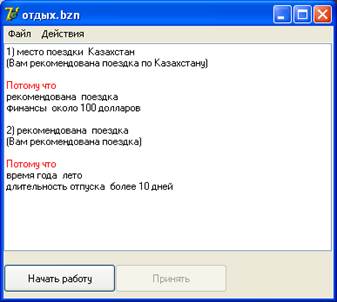 Таким образом, разработанная оболочка экспертной системы выполняет все задачи, поставленные в начале работы.