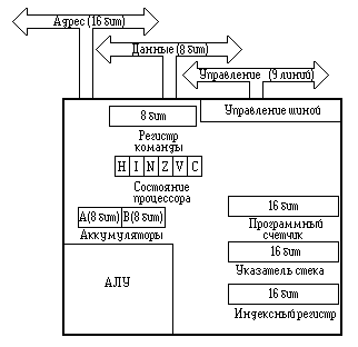 МП фирмы Motorola имел ряд существенных преимуществ. Прежде всего, кристалл МС6800 требовал для работы одного номинала питания , а система команд оказалась весьма прозрачной для программиста. Архитектура МП также имела ряд особенностей.