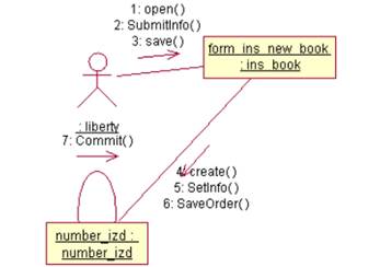 Создать диаграммы сотрудничества, привести и описать диаграмму сотрудничества для одного из прецедентов информационной системы учебной библиотеки.