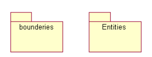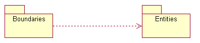 3) Рисование зависимостей между пакетами: на панели инструментов нажала кнопку Dependency (Зависимость). Щелкнула мышью на упаковке Boundaries Главной диаграммы Компонентов. Провела линию зависимости до упаковки Entities. Результат добавления пакетов и рисования зависимостей между пакетами на главной диаграмме пакетов представлен на рисунке 9.