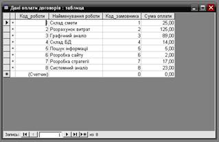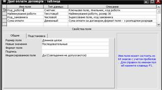 Перша таблиця Дані оплати договорів у режимі конструктора зображена на рис.1.