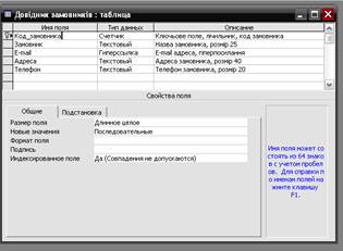 Друга таблиця Довідник замовників у режимі конструктора зображена на рис.2.