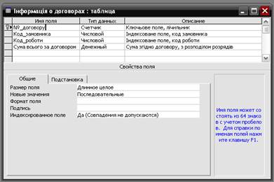 Третя таблиця Інформація о договорах у режимі конструктора зображена на рис.3.