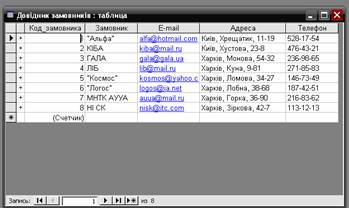Перша таблиця у режимі таблиці зображена на рис.5.