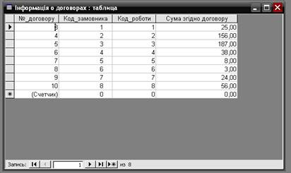 Третя таблиця у режимі таблиці зображена на рис.7.
