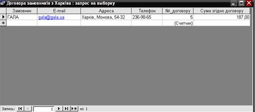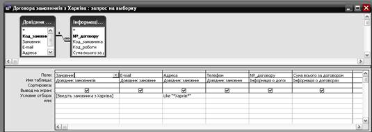 Запит 1 Договора замовників з Харківа у режимі конструктора зображений на рис.11: