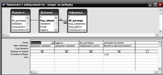 Запит 2 Замовники з заборгованістю у режимі конструктора зображений на рис.13:
