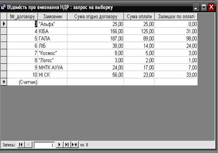 Запит 3 з Відомість про виконання НДР у режимі конструктора зображений на рис.15: