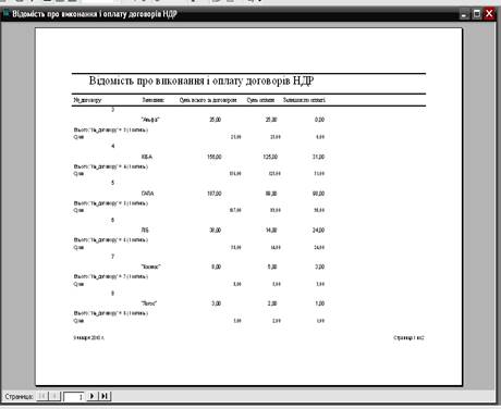 Звіт Відомість про виконання і оплату договорів НДР (рис.17):