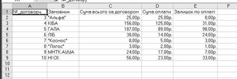 5. Розрахунок відомості про виконання договорів за допомогою MS Excel