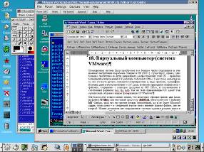Віртуальний комп'ютер - спеціальна програма, яка запускається в ОС Linux і моделює фізичний комп'ютер на основі процесора Intel x86. Монітором віртуального комп'ютера є вікно графічної оболонки X Window, в яке проводиться виведення інформації. На рис. 18.1 видно, як виглядає Windows NT 4.0, що працює на віртуальному комп'ютері, запущеному з ОС Linux.