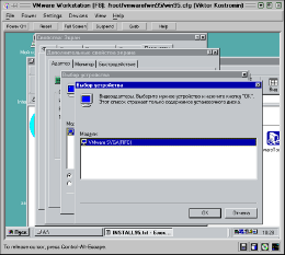 Установка CD-ROM ще простіше, ніж жорсткого диска. Тут треба задати тільки один параметр - ім'я пристрою. Можна ще визначити, підключати чи CD-ROM автоматично при запуску віртуальної машини. Для підключення дисковода гнучких дисків треба вибрати тип: пристрій (Device) або файл (File), і задати або вибрати один з пристроїв (наприклад, / dev/fd0 або / dev/fd1), визначивши, чи буде дисковод підключатися автоматично. Необхідно мати на увазі, що фізичний floppy-дисковод не може використовуватися одночасно операційними системами двох (і більше) віртуальних машин або віртуальним і базовим комп'ютером. У процесі роботи з віртуальною машиною можна в будь-який момент відключити дисковод, скориставшись командою "Devices" головного меню. І, навпаки, можна підключити дисковод через ту ж команду меню, звільнивши його попередньо в інших ВМ і в базовому комп'ютері. На базовому комп'ютері для цього треба демонтувати диск (у Linux) або перемкнутися на якісь каталоги інших дисків у всіх запущених програмах (якщо на базовому комп'ютері запущена Windows).