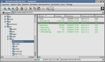Відповідаючи на це питання можна сказати, що деякі офісні пакети для Linux, наприклад, KOffice, або текстовий процесор AbiWord, вміють працювати з файлами MS. Однак, поки що домогтися 100%-ної сумісності в цьому питанні не вдалося (Примітка 24). Можна, звичайно, встановити дві операційні системи в різні розділи диска і перезавантажуватися в Windows, коли виникне необхідність попрацювати з файлами від Microsoft Office [П20.2]. Але це дуже незручно. Так само незручні і різні програми-перекодіровщікі, перетворюють doc-файли в html або інший відкритий формат, доступний для програм під Linux. (З появою пакету OpenOffice.org ситуація починає змінюватися, див. гл. 12).