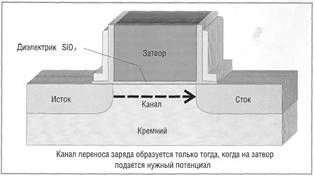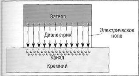 можно накопить больший заряд в канале проводимости, а следовательно, и создать больший ток. Таким образом, большая емкость позволяет снижать напряжение на затворе, что немаловажно при уменьшении размеров транзисторов. Кроме того, на ток в канале проводимости оказывает непосредственное влияние и длина самого канала: чем она меньше, тем больший ток можно получить. По мере уменьшения размеров транзистора уменьшалась и толщина слоя диэлектрика. При этом между длиной канала и толщиной слоя диэлектрика соблюдается простое соотношение: