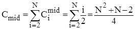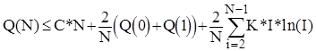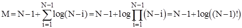 Аналіз бінарного включення. Зрозуміло, що кількість порівнянь у такому алгоритмі фактично не залежить від початкового порядку елементів. Місце включення знайдено, якщо L=R . Отже вкінці пошуку інтервал повинен бути одиничної довжини. Таким чином ділення його пополам на i -ому етапі здійснюється log(i) раз. Тому кількість операцій порівняння буде: