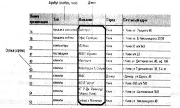 Распространенным представлением отношения является таблица, заголовком которой является схема отношения, а строками - кортежи отношения-экземпляра (см. рис. 1.1). В этом случае имена атрибутов именуют столбцы этой таблицы, поэтому иногда говорят столбец таблицы, имея в виду атрибут отношения. Этой терминологии придерживаются в большинстве коммерческих реляционных СУБД.